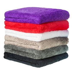 The Microfibre Towels are available in black, purple, red, silver grey, white and steel grey.