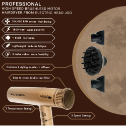 PROFESSIONAL HIGH SPEED HAIRDRYER WITH BRUSHLESS MOTOR.